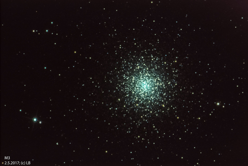 Messier 3 ist ein galaktischer Kugelsternhaufen im Sternbild Jagdhunde am Nordsternhimmel. Er ist rund 34.000 Lichtjahre vom Sonnensystem entfernt, hat einen Durchmesser von etwa 125 Lichtjahren und ist mit einer halben Million Sterne ein sehr großer Kugelsternhaufen. Der Haufen enthält mit 212 veränderlichen Sternen die größte Anzahl dieser Sternklasse in unserer Galaxie. Von 186 Sternen konnte eine Periode bestimmt werden.