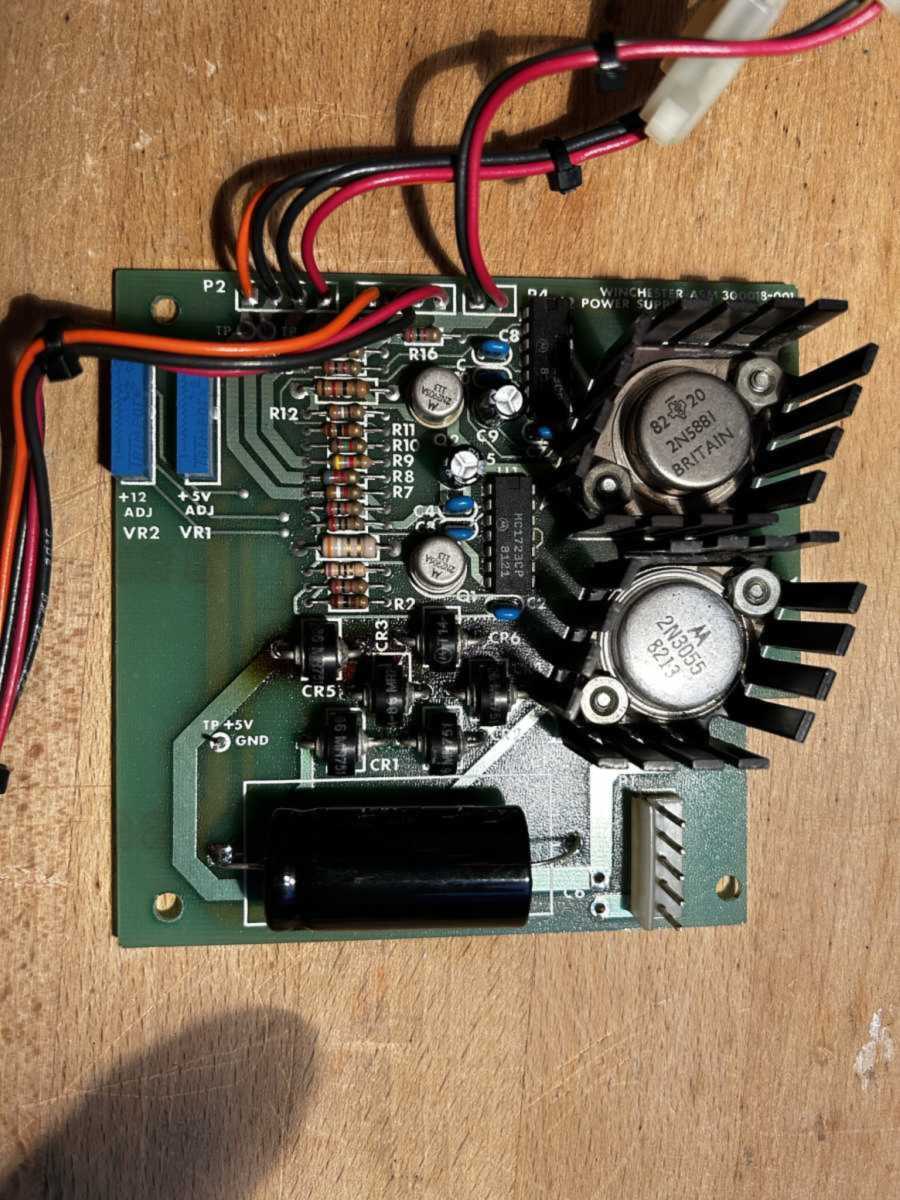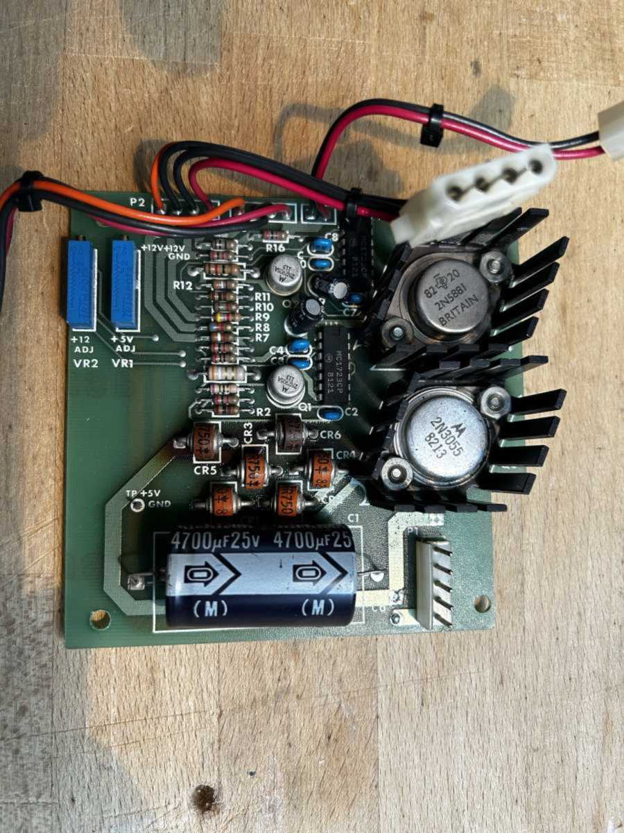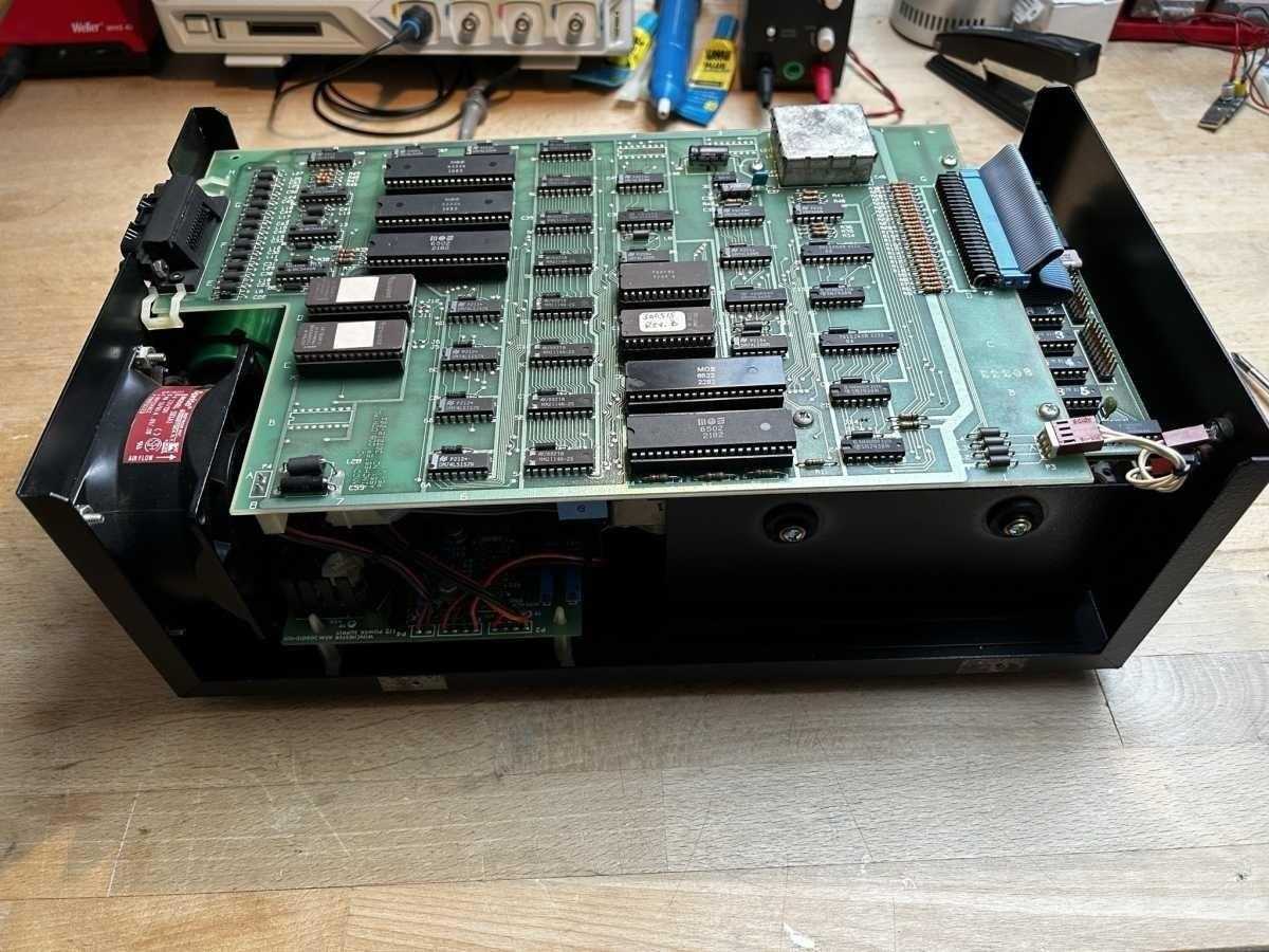 Wichtig war auch die Prüfung und wiederherstellung der Stromversorgung, die sich auf einer eigenen Platine befindet. Hier waren deutliche Verkohlungsspuren zu erkennen, insbesondere an den Gleichrichterdioden. Ich entschied mich daher, die auszutauschen, genauso wie die Elektrolytkondensatoren, da diese über die Jahre chemisch abbauen. Nach einer Einmessung des linearen Netzteils und justierung der Spannungen konnte heute, am 29.1.2023, 40 Jahre nach Verkaufsstart der D9090 der finale Test erfolgen.