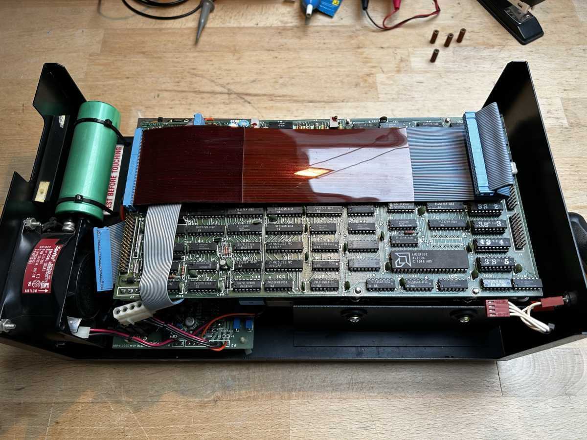 Die hier restaurierte Festplatte war in einem ersten Test nicht lauffähig. Die eingebaute Tandon 603S lief nicht an. Nach näherer Untersuchung stellte sich heraus, dass die Leseköpfe auf den Festplattenscheiben festgerostet waren. Dies ließ sich zwar kurzfristig durch manuelle Bewegung des Steppermotors für die Leseköpfe lösen, jedoch konnte ein sicherer Betrieb damit nicht mehr hergestellt werden. Ich habe die Tandon Festplatte durch eine etwas modernere Seagate ST251 Festplatte mit 6 Köpfen ersetzt. Diese sind ebenfalls heute in funktionierender Form nicht mehr leicht zu fnden. Aber nach 2 erfolglosen Versuchen wurde ich in der Bucht schließlich fündig.