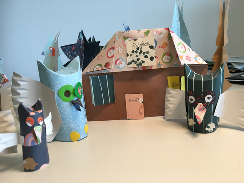 Die Inhalte dieser kleinen Bastelecke sind in kreativen Phasen, ohne großes Zutun eines Erwachsenen entstanden.