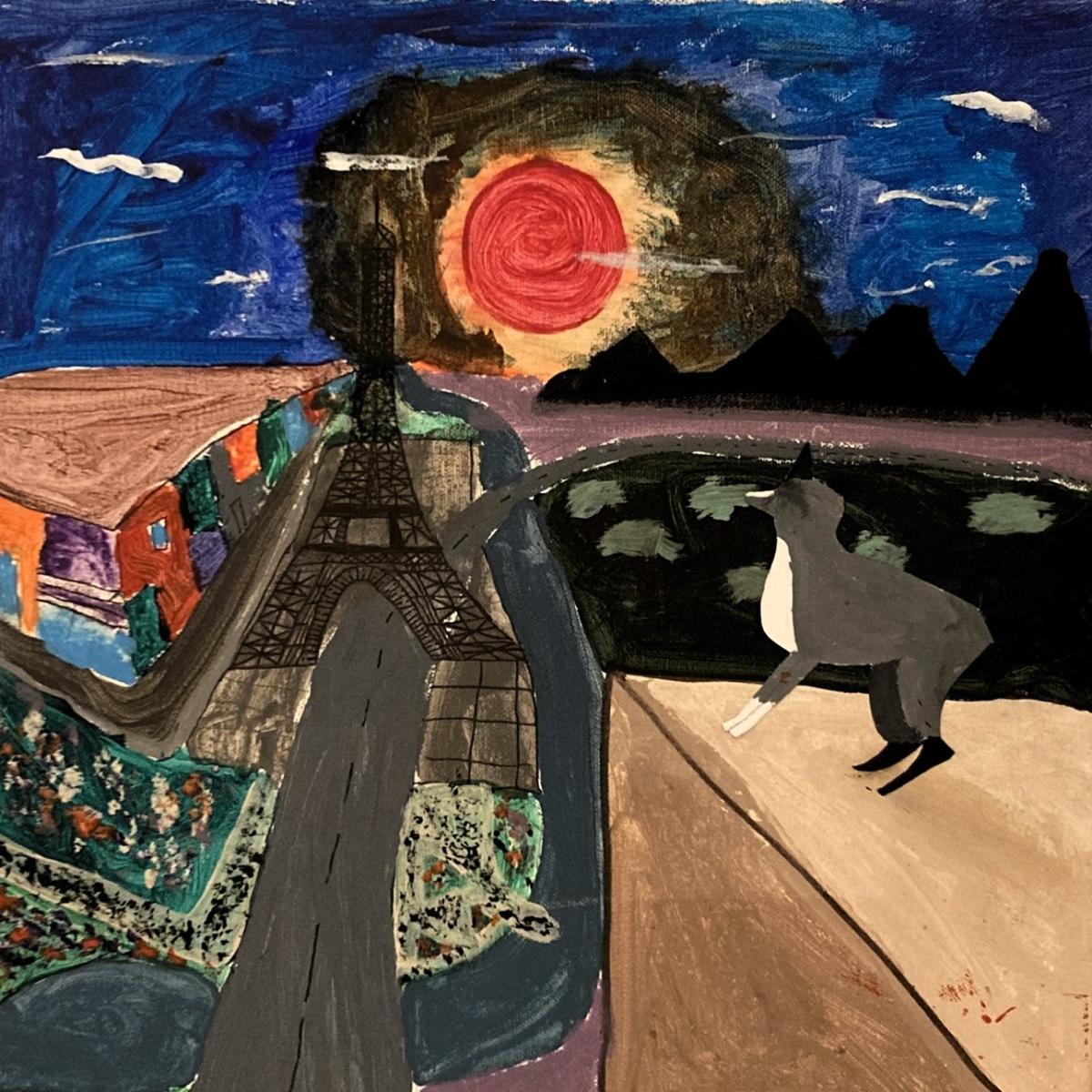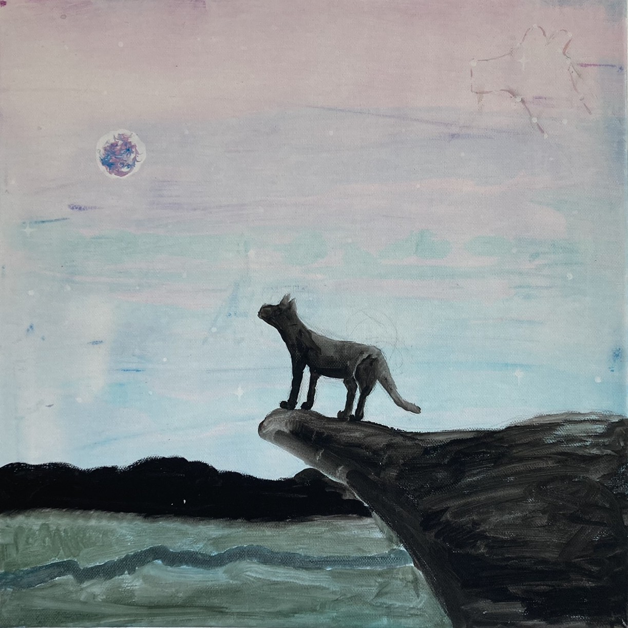Zwei Tierträume in Acryl auf Leinwand. Wie bei Ying und Yang spielen Sonne und Mond eine große Rolle.