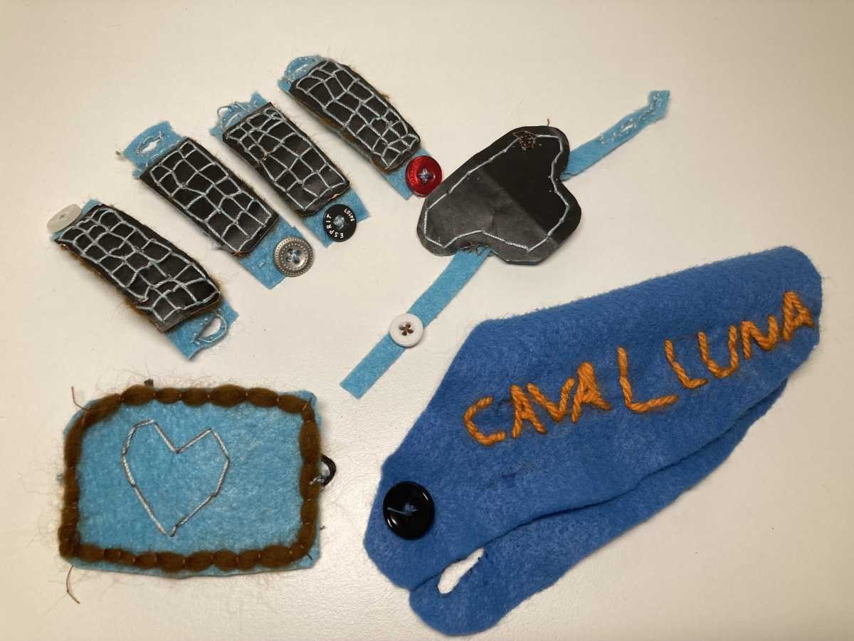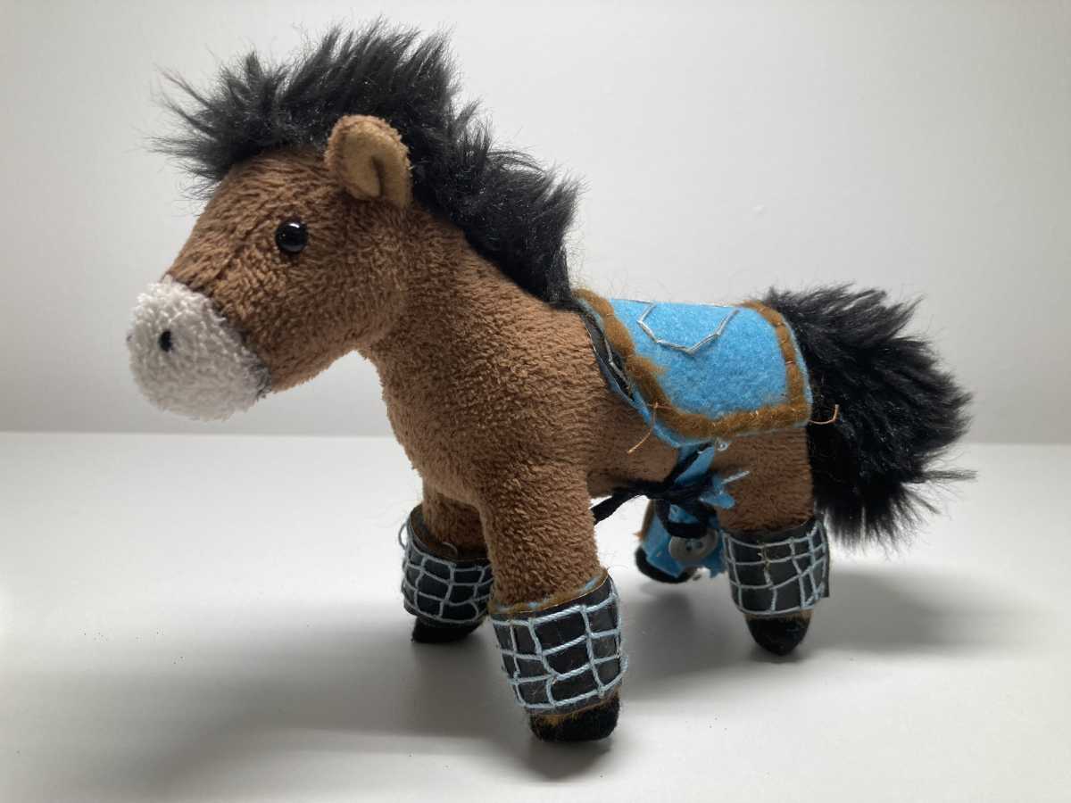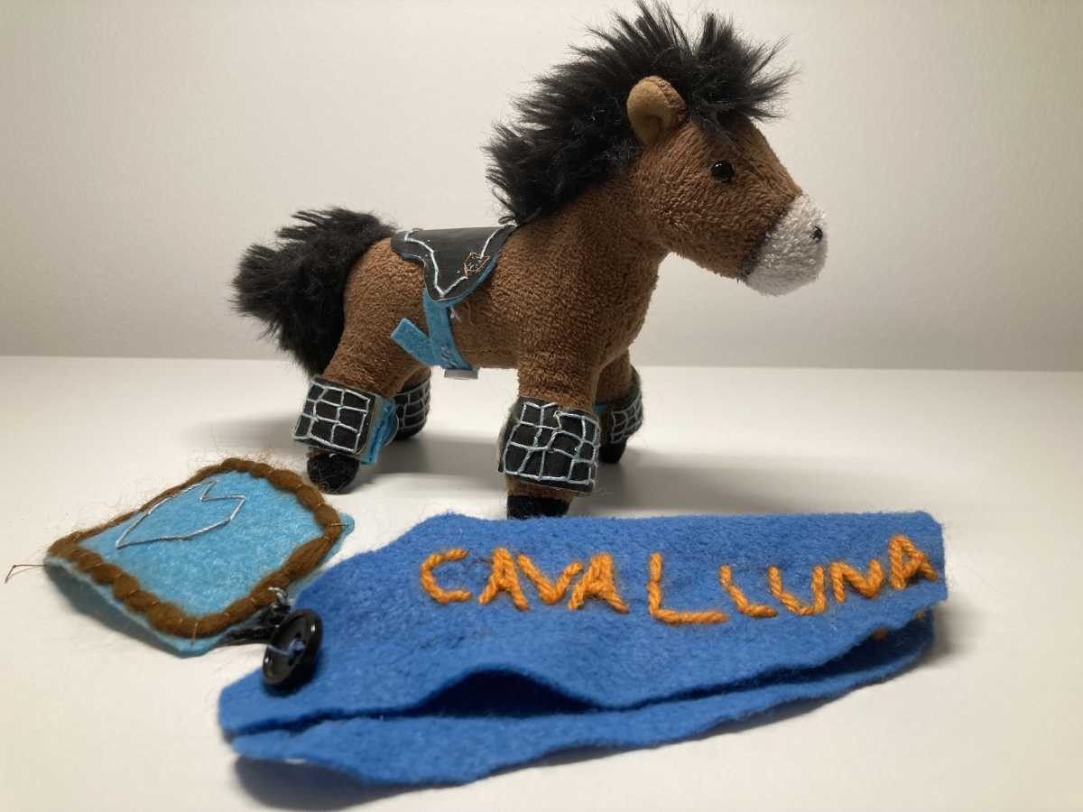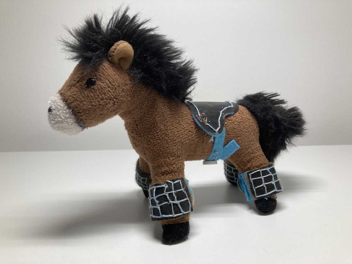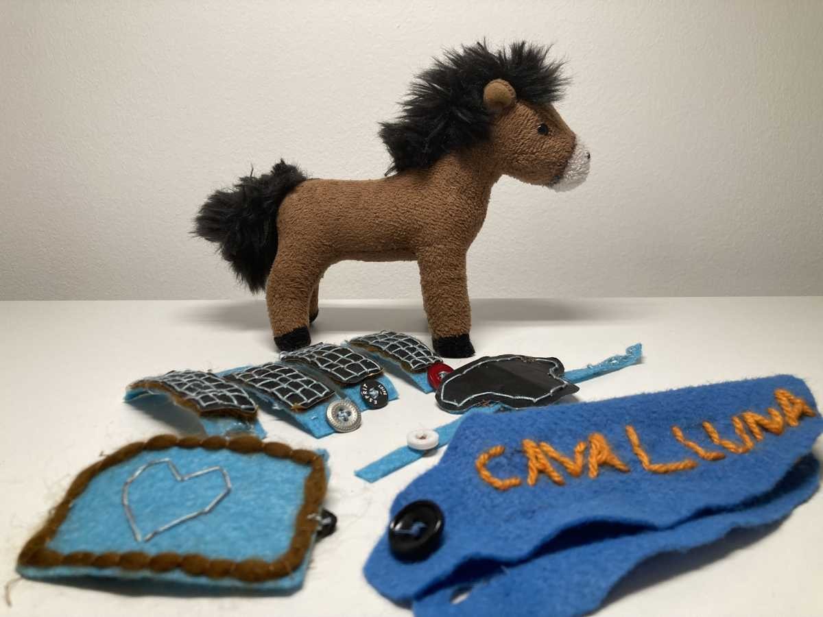 Folgendes Pferdezubehör für das kleine Plüschpferd Jonny wurde in liebevoller, stundenlanger Handarbeit hergestellt.